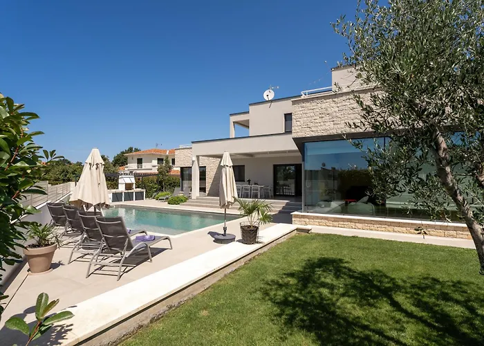 Villa Anni设有室外游泳池,日光浴和水上乐园,距离尤弗拉西苏斯圣殿3.1公里. 从别墅到波雷奇古城有10分钟的车程.